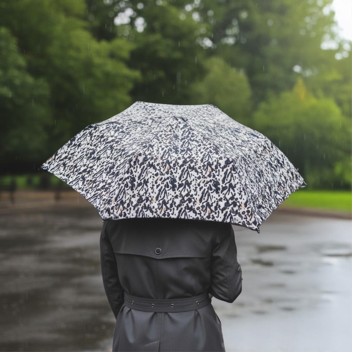 This compact, flat umbrella features a great, on-trend animal markings print and is on a 5 section steel frame with chrome plating and 100% recycled polyester canopy. Perfect to pop in your bag for the daily commute and to add a bit of pizazz to a damp day.